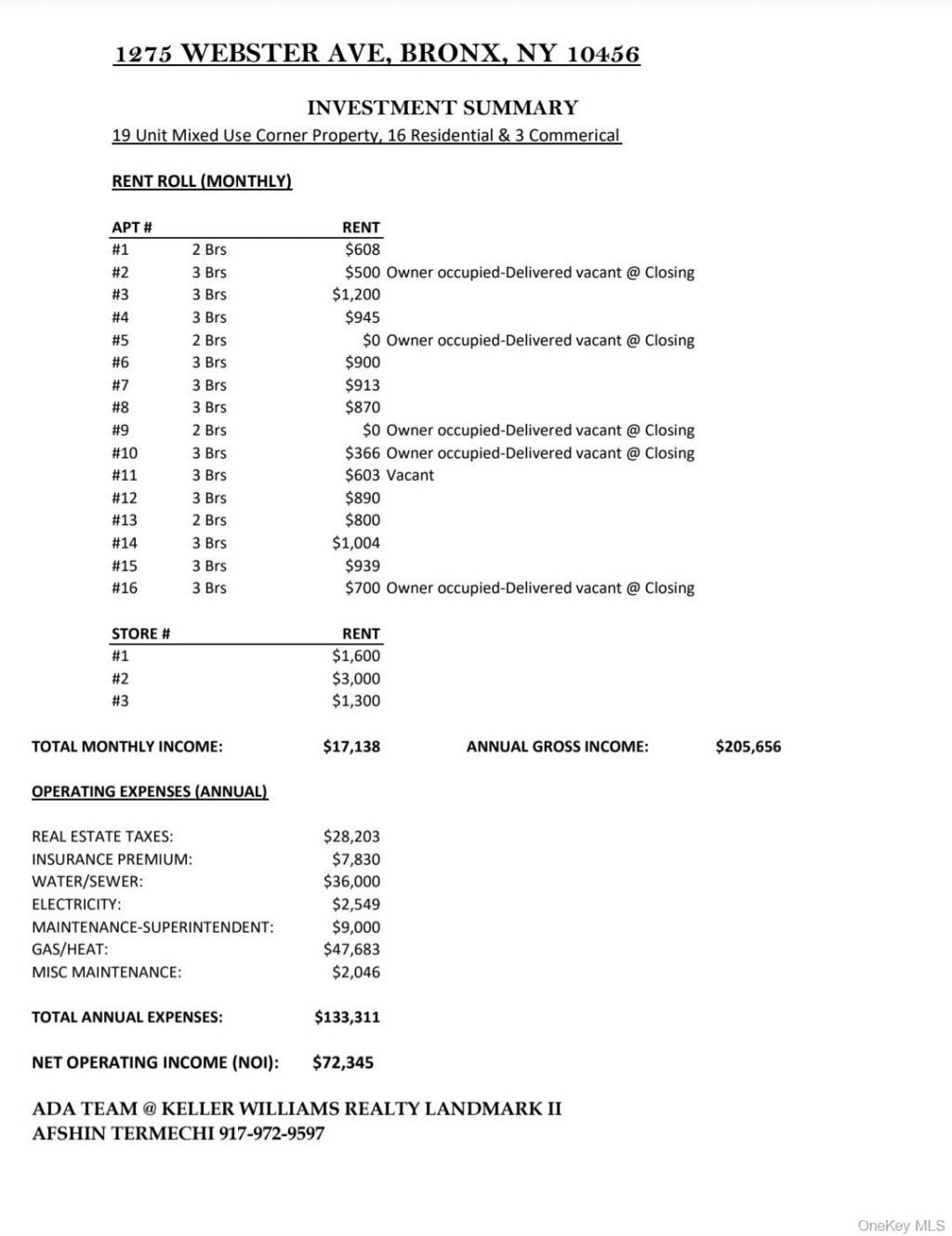 This commercial property located at 1275 Webster Avenue, Bronx, NY 10456 is currently listed for sale with an asking price of $1,600,000. Webster Avenue is located within the Bronx 9 school district. Search Bronx real estate on steven-rose.timberlandproperties.com today.